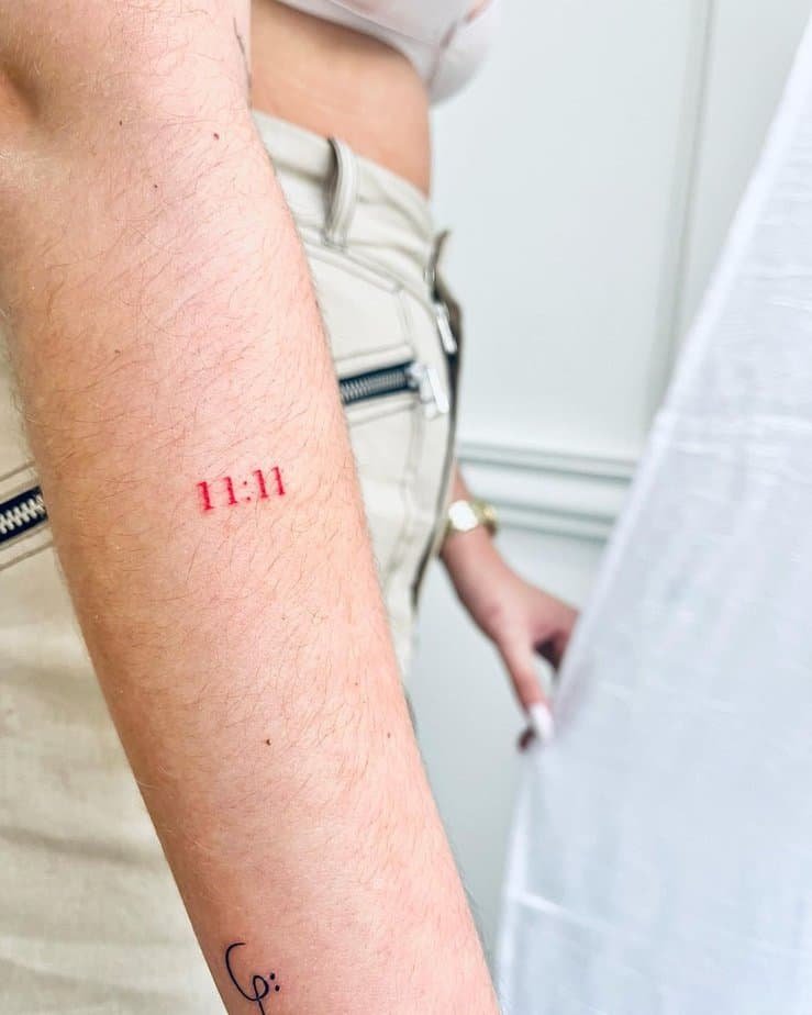 Below are a whole bunch of 11:11 tattoo ideas — from teensy wrist marks to more detailed pieces — each with its own vibe and meaning. If you’re into manifesting, gentle reminders, or just a cute design, one of these might stick with you.