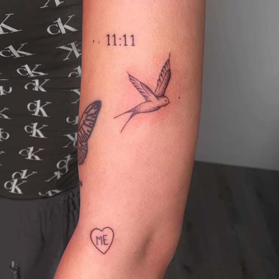 Adding birds to your 11:11 tattoo brings in that feel of new starts and gentle freedom. The black-and-gray shading gives it depth while keeping a soft, warm energy — perfect if you want a design that says, “I’m ready to go” without being loud about it.