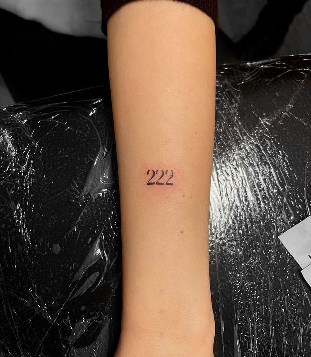 Placing 222 above the elbow is kind of perfect — discreet but meaningful. It sits where you can peek at it and be reassured: you’re in sync with your path. It’s the sort of spot that feels intimate, a private pep talk inked onto your skin.