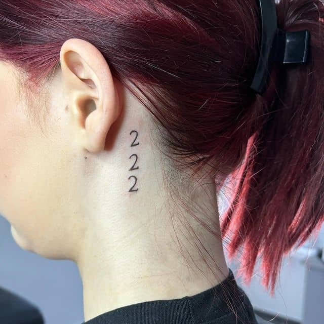 Behind-the-ear 222s are quietly intimate — only the closest people or that haircut will reveal it. It’s the kind of mark that feels like a whispered blessing, always near but never loud.
