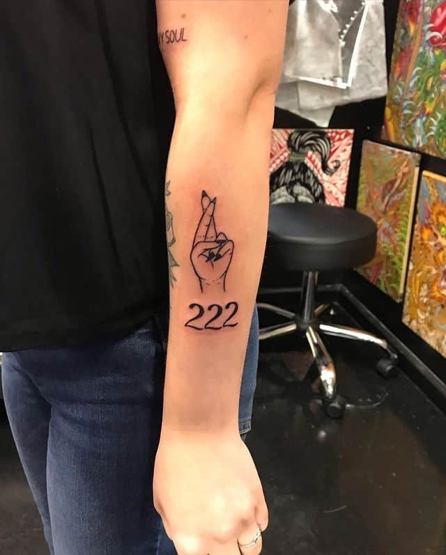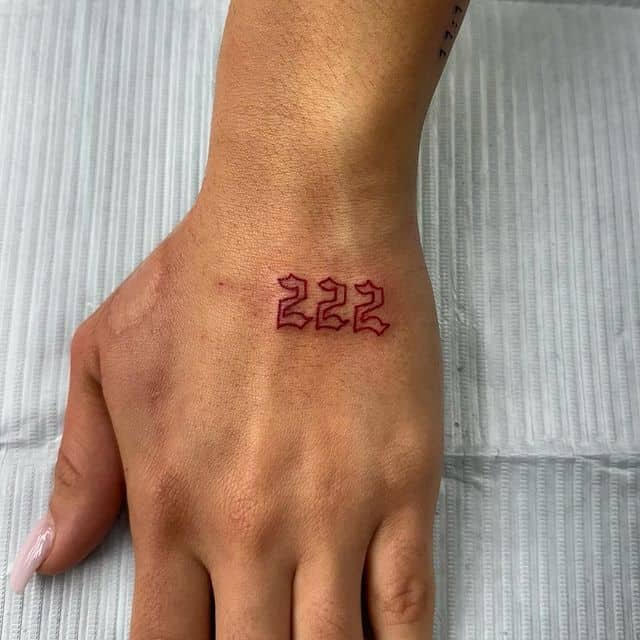 A bold 222 on the upper back gives off confidence and steadiness. It’s one of those placements that feels protective, like a spiritual anchor. Every mirror check can feel empowering, reminding you of your resilience and the path you’re walking.