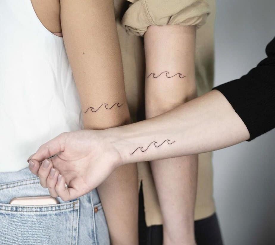 Waves are chill and deep at the same time — perfect if you both love the ocean or the idea of flowing through life together. They can be tiny, bold, abstract, or delicate; either way, they feel calming and cool.