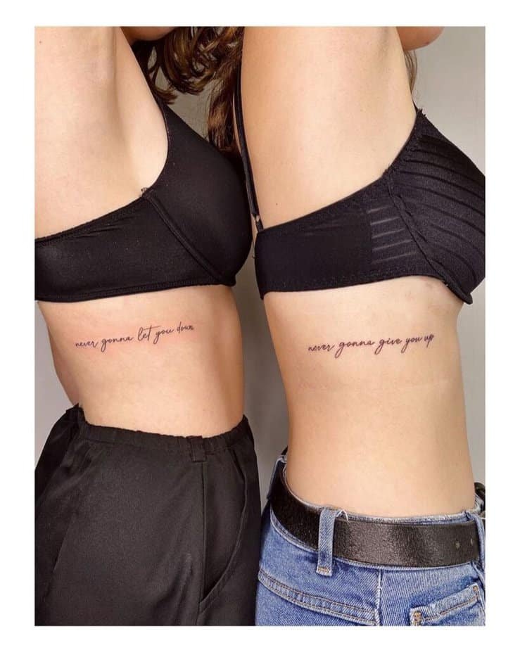 Lyrics, quotes, or even a stupid prank lyric you both love — script tattoos are ideal for friends who bond over words. Go famous, go hidden, or go totally ridiculous. Either way, it’ll make you smile every time you read it.