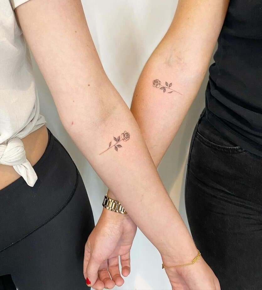 Flowers are always in style. They read as beauty, friendship, and love without being dramatic, and they can be customized so they don’t feel basic. A tiny bloom on each of you is feminine, cute, and something you’ll actually love long-term.