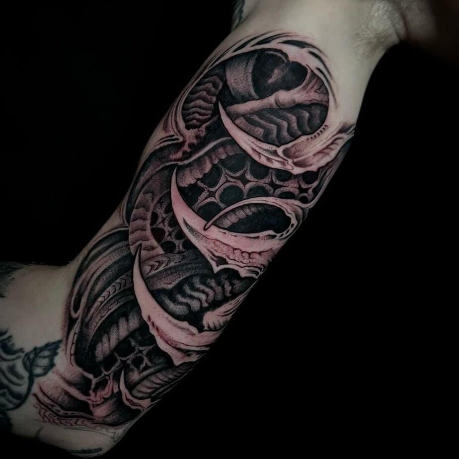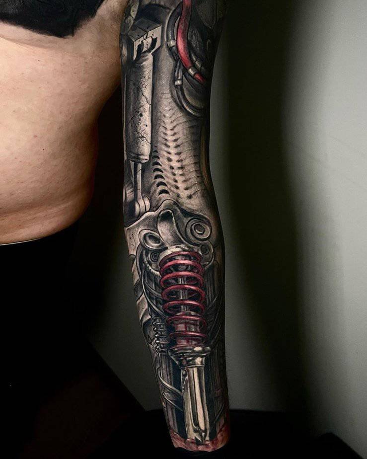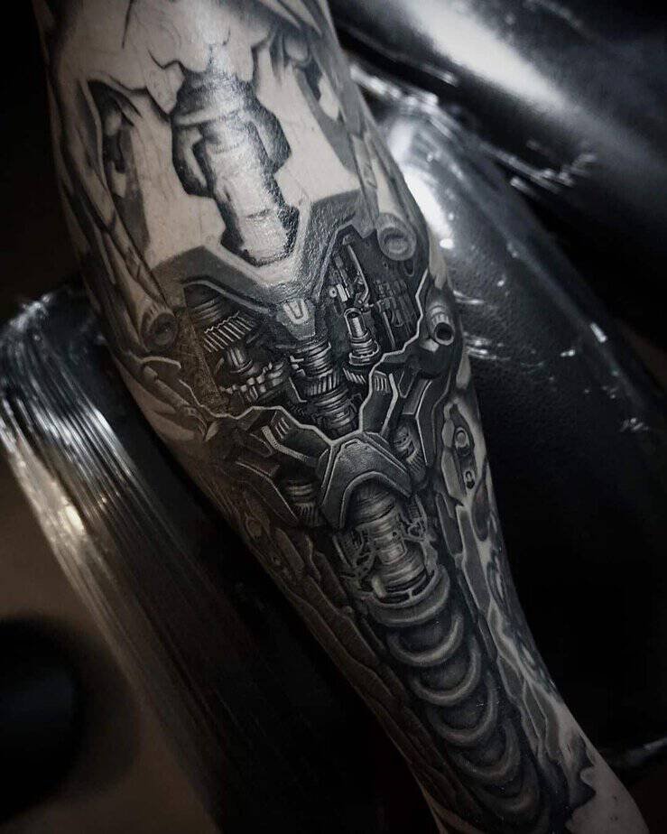 It’s obvious a biomechanical tattoo isn’t for everyone — and honestly, that’s part of the charm. These pieces usually go big (a lot of folks who get them are men who want coverage), and they carry this vibe of something almost inhuman peeking out from under the skin. Sometimes people choose them to show the tough stuff they’ve been through, the parts of themselves they keep hidden, and sometimes it’s just pure aesthetics: intricate details, pipes, shadows, and those tiny highlights that make metal look alive. Either way, you’ll want a little inspiration before you commit — and yeah, these designs do not skimp on detail.