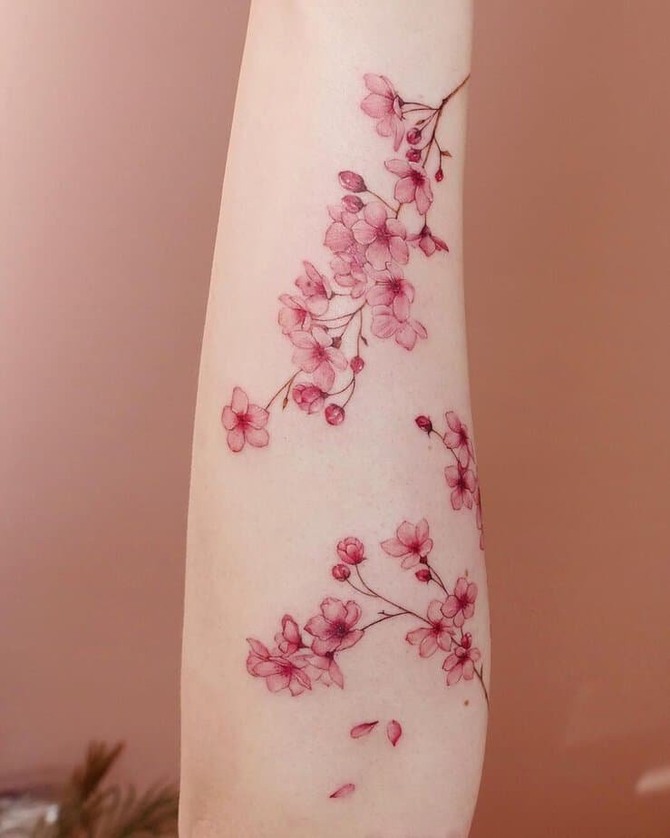 Pretty n’ pink cherry blossom tattoos