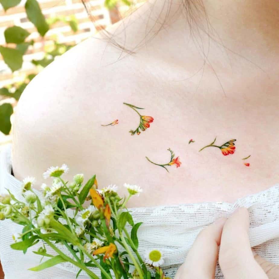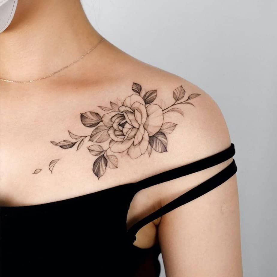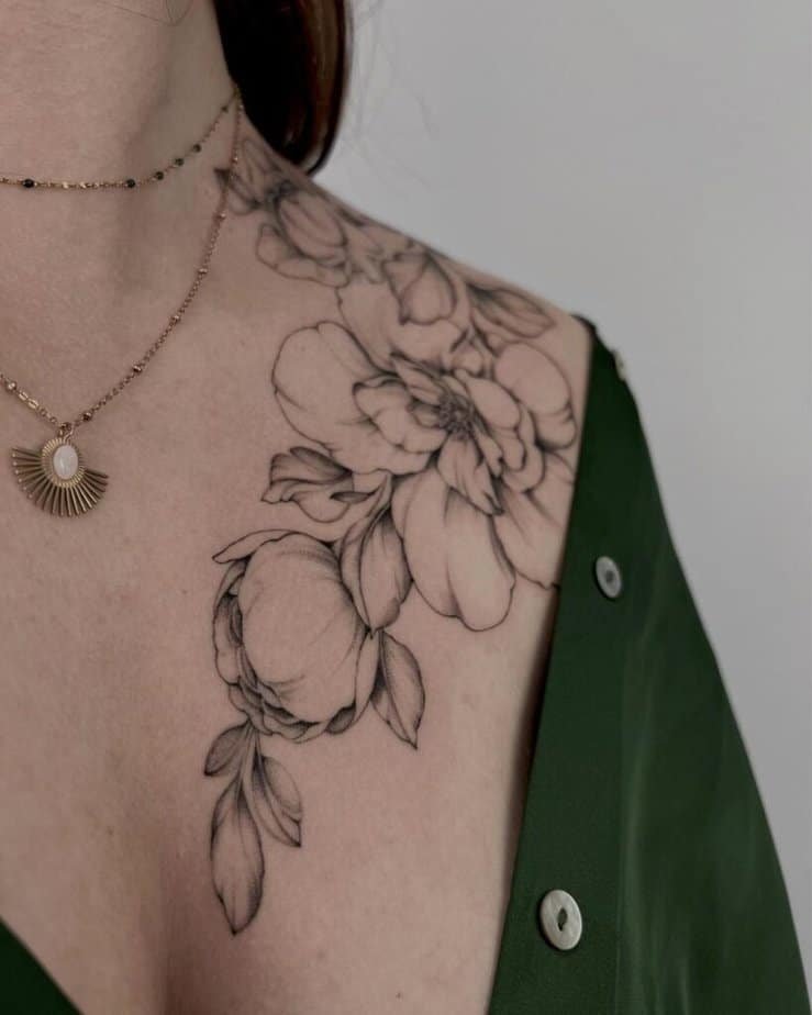 Flowers are basically a collarbone classic for a reason—they look elegant without doing too much work. You can go full statement with a floral arrangement that stretches across the area, or keep it more refined with a single bloom. Either way, flowers give you meaning and beauty at once, so whether you want romance, strength, or a memory woven into a petal, you really can’t go wrong.
