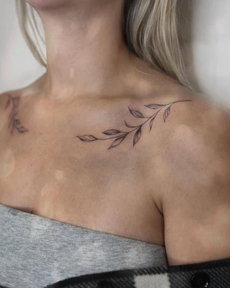 One of the best things about collarbone ink is you don’t have to choose just one side. Symmetrical leaf designs on both collarbones can feel balanced and intentional—like your body’s quietly accessorized.