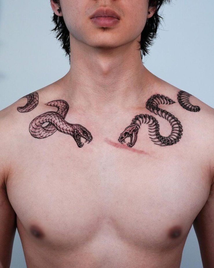 Snake tattoos move with your body in such a cool way—they accentuate the collarbone curve and can represent transformation, healing, or a deep quest for knowledge. Not everyone’s cup of tea, but they’re striking when they work with your form.