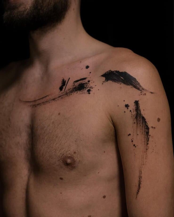 Abstract brushstroke tattoos feel modern and artsy—like carrying a little canvas with you. One bold stroke along the collarbone can look striking and deceptively simple.