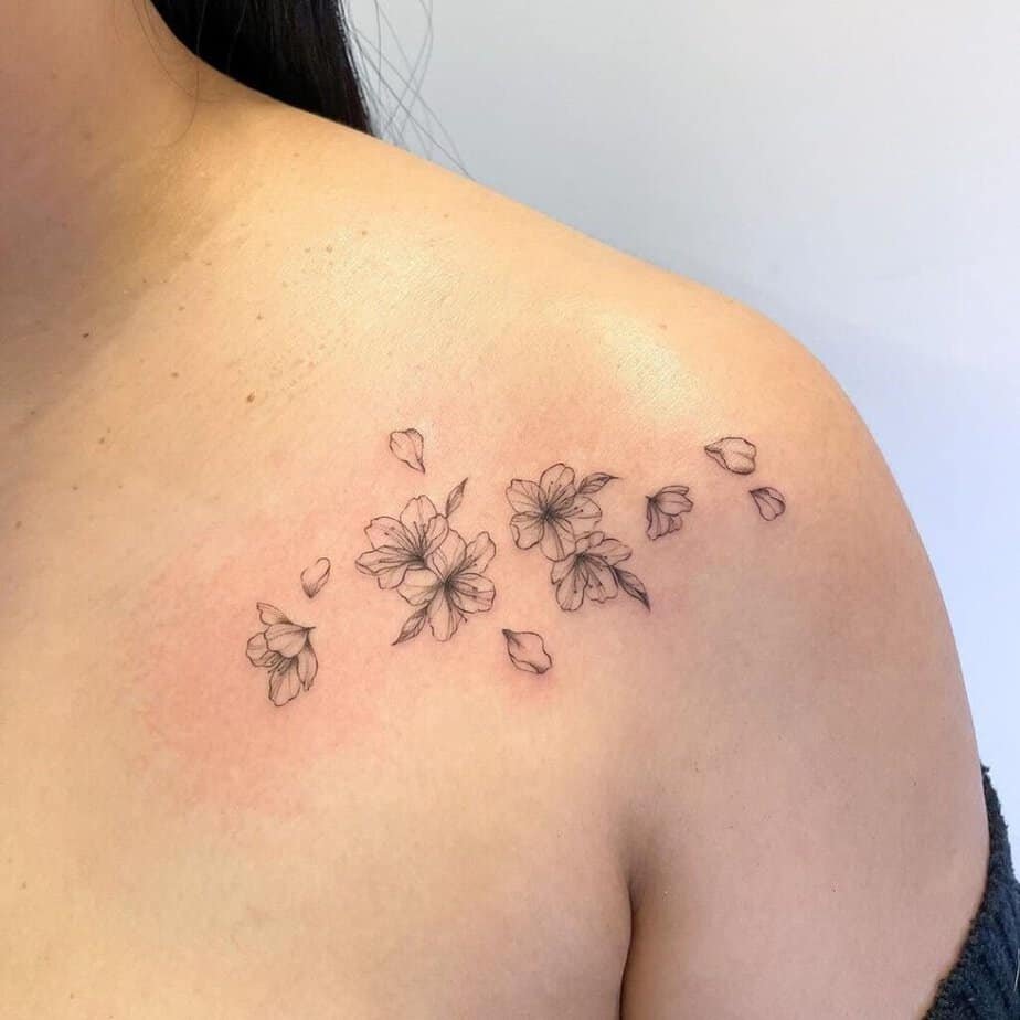 Cherry blossoms are dramatic in the best way. Scatter them across your shoulders, chest, and collarbones and you’ve got this soft, flowy look that feels both romantic and a little wild. They age beautifully too—kind of like a living story on your skin.