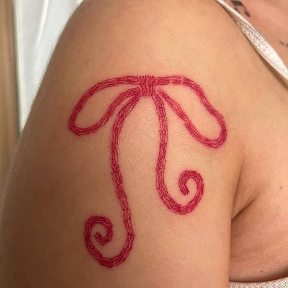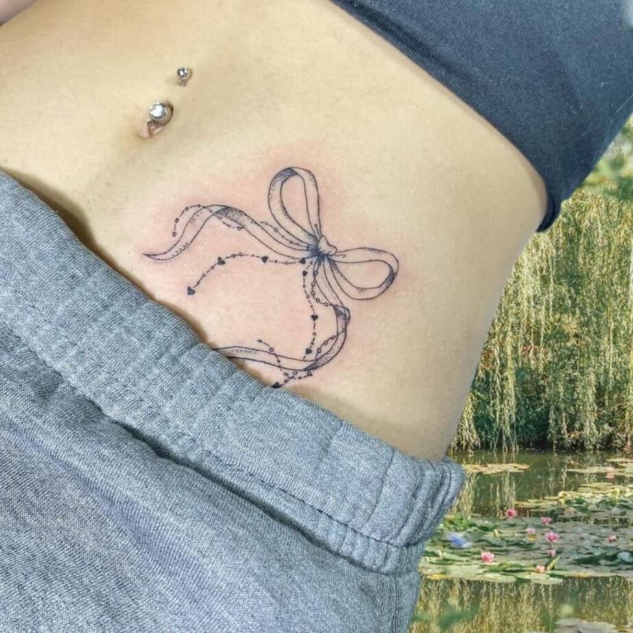 Okay, hear me out: a sleek little ribbon is basically the universal coquette starter pack. Go black-and-white for a touch of quiet elegance, and you’ve got something that reads delicate without being fragile. It’s the kind of tattoo that feels personal and timeless — like a whisper of your softer side.