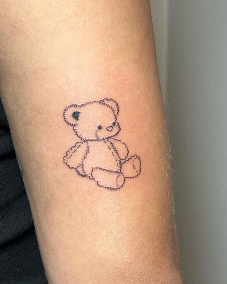 Not into ribbons? A small teddy bear is an adorable alternative. It gives off childhood-nostalgia while staying totally coquette — like wearing a comfy sweater in tattoo form.