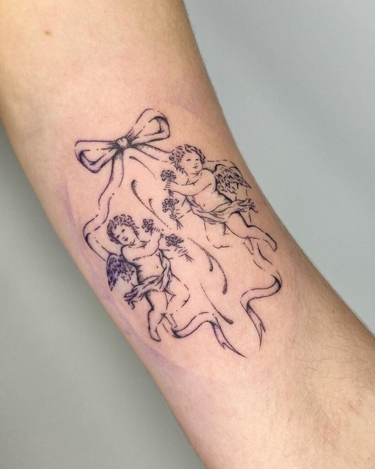 Cherubs carry a lot of meanings — devotion, spirituality, or just straight-up romantic vibes. Get them if you want a tattoo that feels tender and meaningful, and make it yours: whether it’s a spiritual nod or a cute coquette flex, the symbolism is yours to choose.