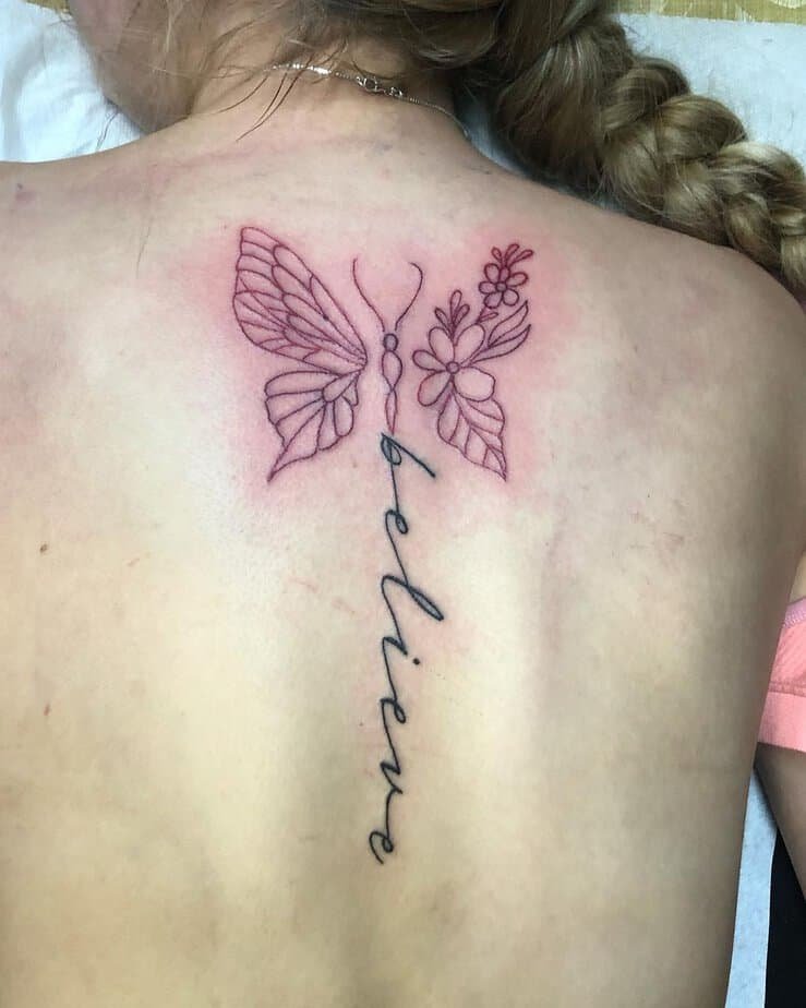 A fine-line butterfly starting the script is both delicate and clever, especially if it’s done in a different color to make it pop.