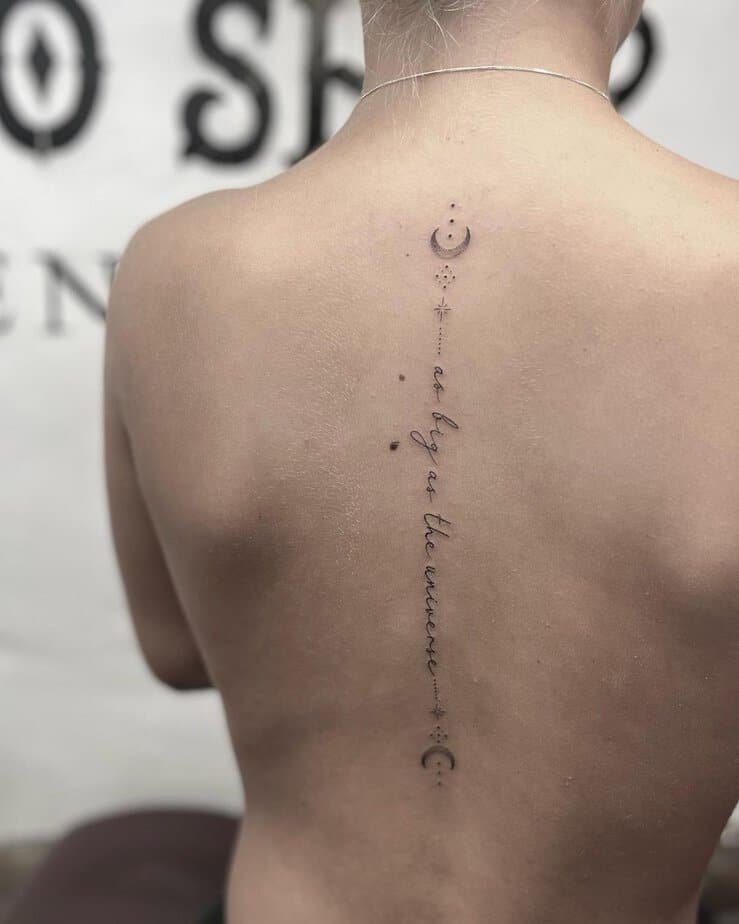 If faith is part of your story, a tiny cross at the crown of your spine ties everything together. It feels sacred and grounding when paired with a meaningful quote.