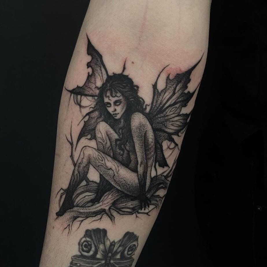 People mix up fairies and the fae all the time, but mythologically the fae are messier and meaner — perfect for dark feminine vibes. You’ll find delicate wings paired with eerie faces, the kind of elegance that makes your skin prickle. Some pieces are all detail: webs on wings, mushrooms, moons, tiny hidden symbols. They read like forest stories you don’t want to get lost in, but secretly hope you do.