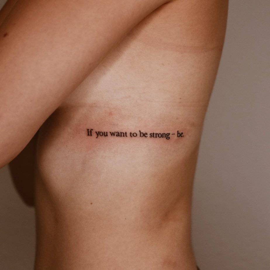 ‘If you want to be strong — be’ is a compact call to courage. Tucked under the ribs, it’s private but potent, a reminder that strength is often a daily choice. Perfect for anyone who wants a subtle boost of bravery.