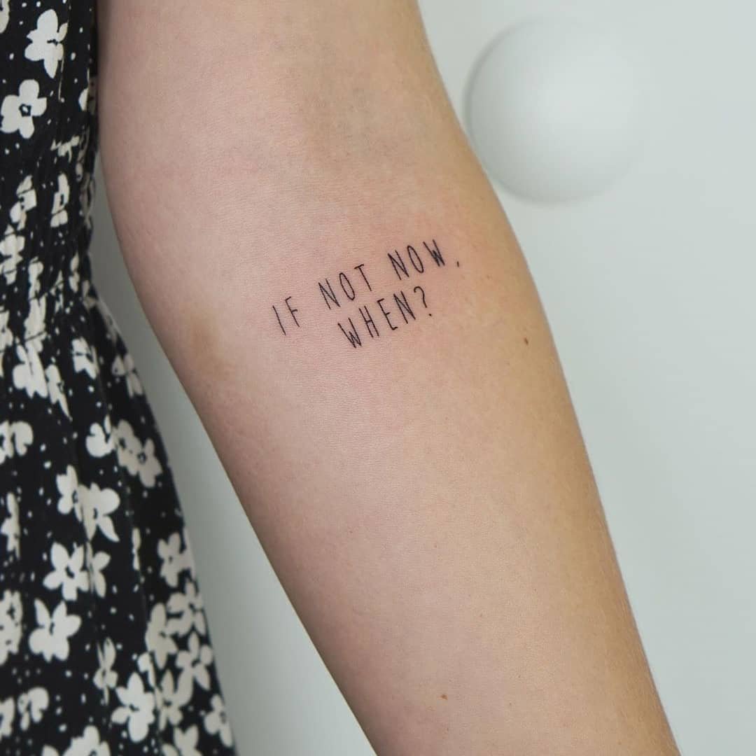 If procrastination is your shadow, this one’s for you: ‘If not now, when?’ It’s a bold, practical question inked in a tiny spot. It doesn’t nag — it just asks you to show up for yourself and take that first step. Perfect for a wrist or hand where you’ll actually see it when you need the push.