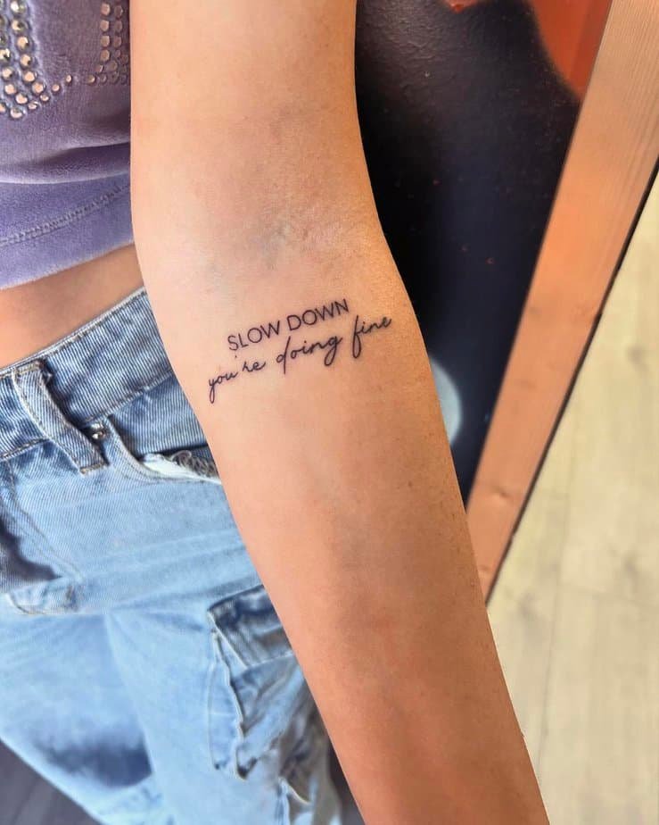 There’s so much pressure to hustle. A little ‘slow down, you’re doing fine’ tattoo is like a friend squeezing your shoulder and saying, ‘you’re okay.’ It’s gentle, grounding, and perfect when you need permission to rest without guilt.
