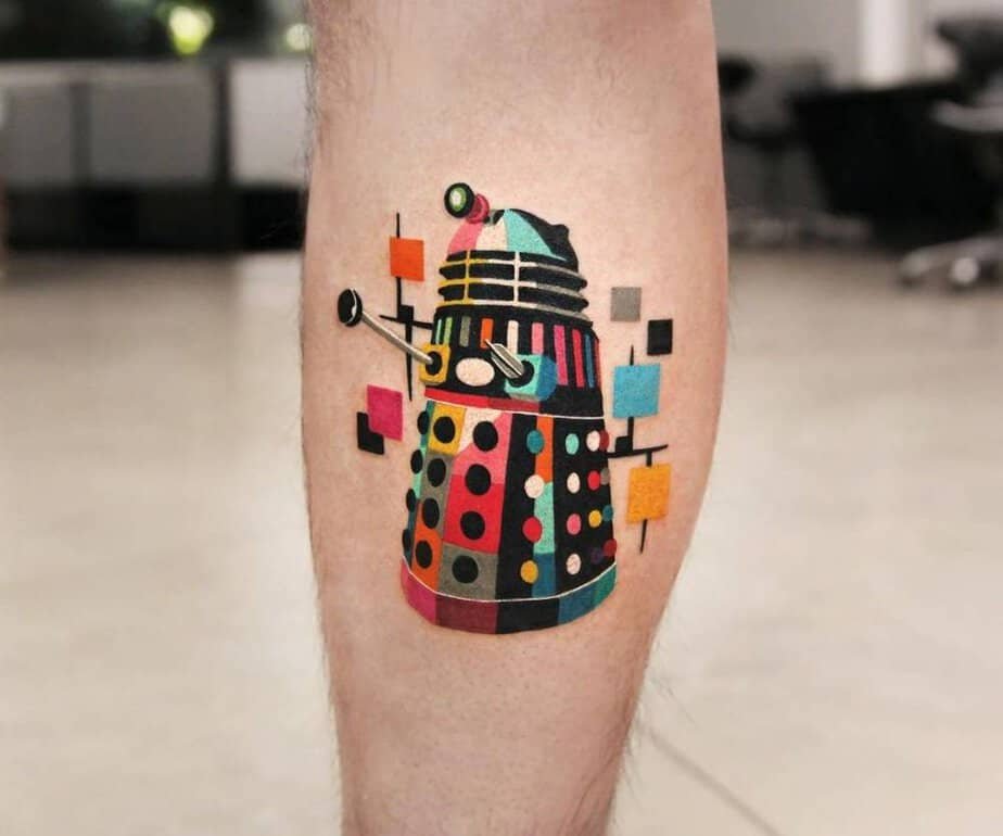 A clean, boxy K-9 that’s instantly recognizable even in a minimalist style—this tattoo is a playful nod to one of the nicest robot dogs on TV. If you loved K-9 as a kid (or still do), this is a low-key tribute that’s full of charm.