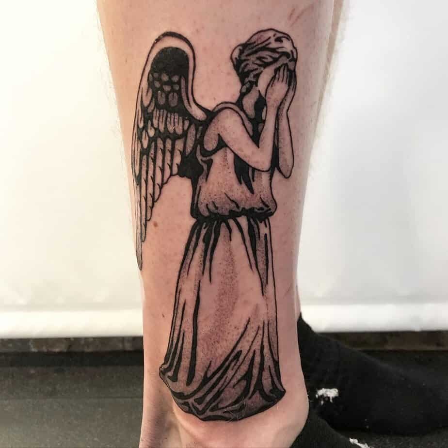 This black-and-grey angel looks like real stone, all statuesque and ready to move the moment you turn away. The shading makes it feel tense and alive—perfect for anyone who still gets the shivers thinking about that “Blink” episode.