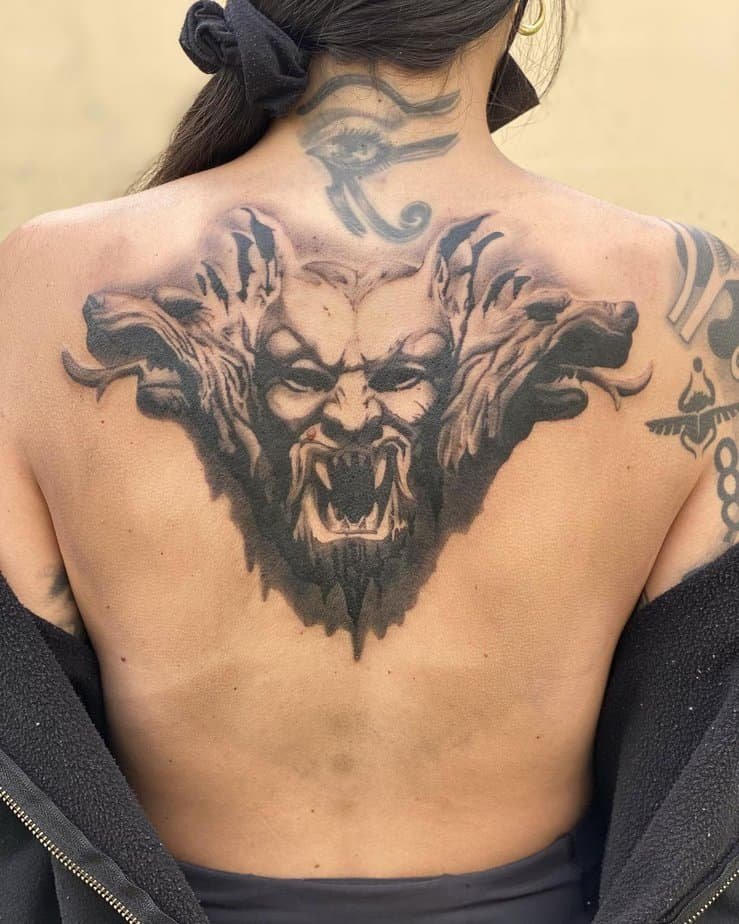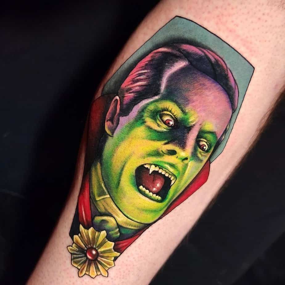 Here Dracula becomes almost mythic — a three-headed figure that feels like a visual shout about shape-shifting and unpredictability. It’s dramatic, a little surreal, and perfect if you want a back piece that reads as both horror and art. People won’t forget it.