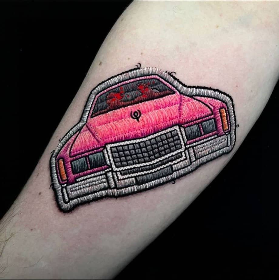 A pink Cadillac done in an embroidery style? Yes please. It feels retro and playful, and if you love film lore, it’s got a darker, cinematic layer — think Goodfellas and that car’s tragic cameo. It’s a piece that looks sweet but carries a story.