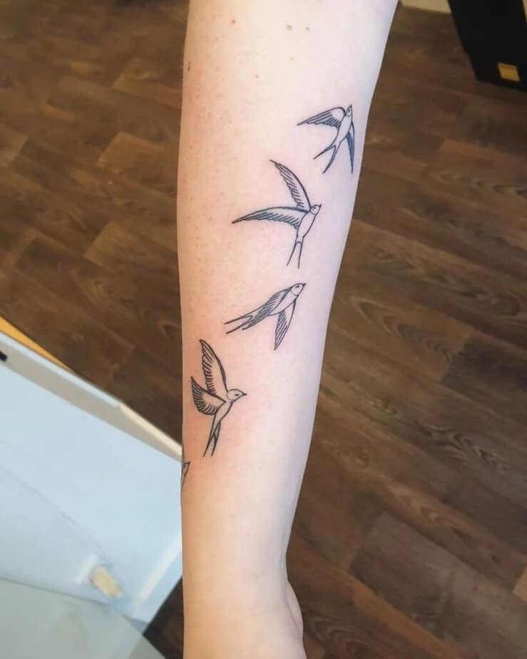 Birds flying together are such a great reminder that even if everyone heads off in different directions, the flock is still there for each other. This kind of tattoo is soft and poetic — a reminder that you always have a place to return to.