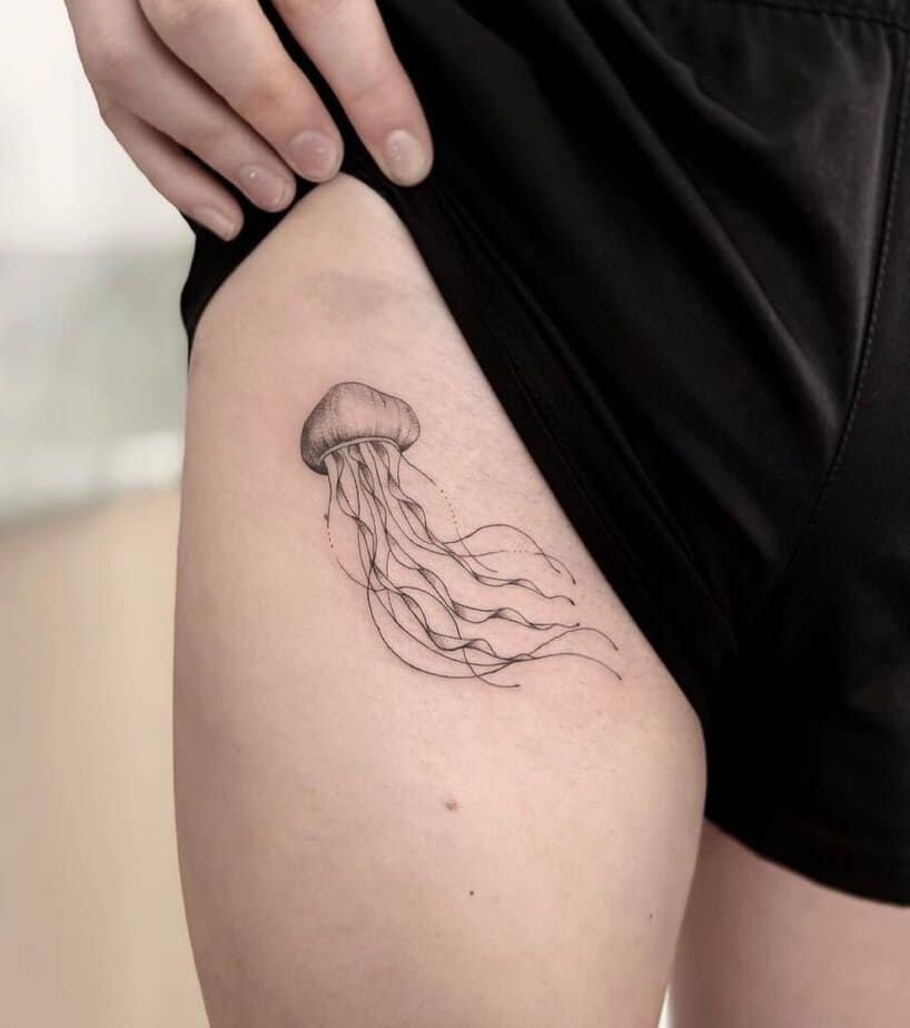 The hip is a great canvas — the design can flow and curve with your body, so the jellyfish feels alive. It’s sensual, playful, and looks gorgeous whether you’re swaying on the dance floor or just lounging at home.