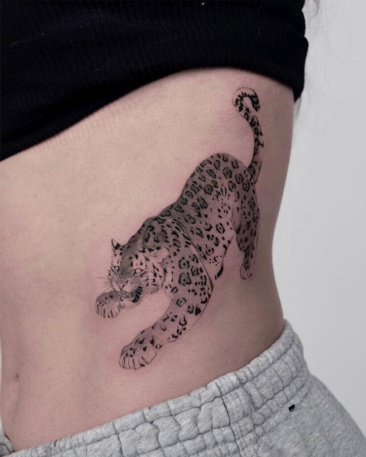 Minimal lines, a poised leopard on the rib cage, and suddenly you’ve got motion and tension without a ton of detail. It’s elegant and subtle, using your body’s curves to sell the sense that the animal might spring to life. For fans of suggestion over spectacle, this is gorgeous.