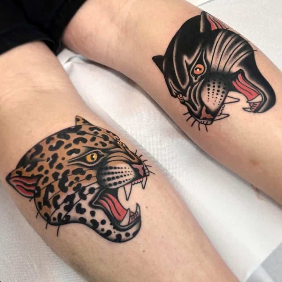 A big, detailed wraparound piece with an intense gaze — this is the kind of tattoo that turns heads. It reads as both a portrait and a statement, showing the leopard as a symbol of beauty and raw strength.