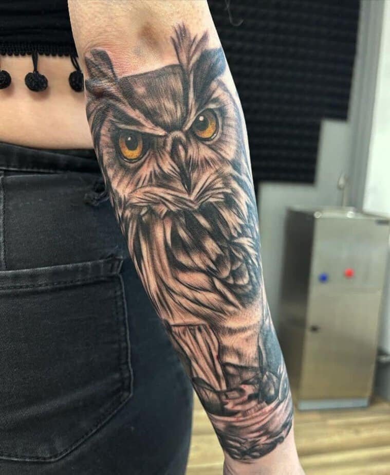 I don’t know about you, but owls always took me back to those cartoons we watched as kids where the wise bird shows up at the exact confusing moment and hands the hero a tiny piece of truth. They have that whole light-in-the-night energy: a little mysterious, a little spooky, and somehow wildly comforting. An owl tattoo can do the same thing for you — a quiet reminder of the vision you’re chasing and a little hope when things feel heavy. I pulled together a bunch of designs to spark ideas, whether you want something delicate, bold, colorful, or delightfully strange.