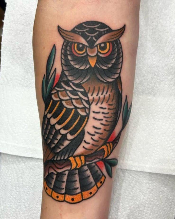 If you love thick outlines and colors that read from across the room, traditional style might be your jam. These owls have personalities — sometimes grumpy, sometimes majestic — and they wear that bold line work like a badge. You can go big and spread wings across your chest, or let a saturated, dark-feeling piece slide down your forearm. What I love is how customizable it is: add a branch, toss in flowers, let a few red accents act as tiny surprises. It’s a classic look that still feels fresh when you inject small, personal details.