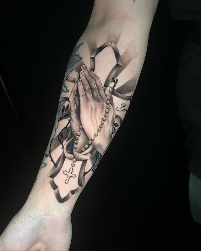 Forearm cross and praying hands