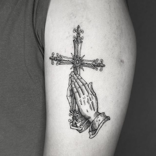 A unique take on praying hands and a cross