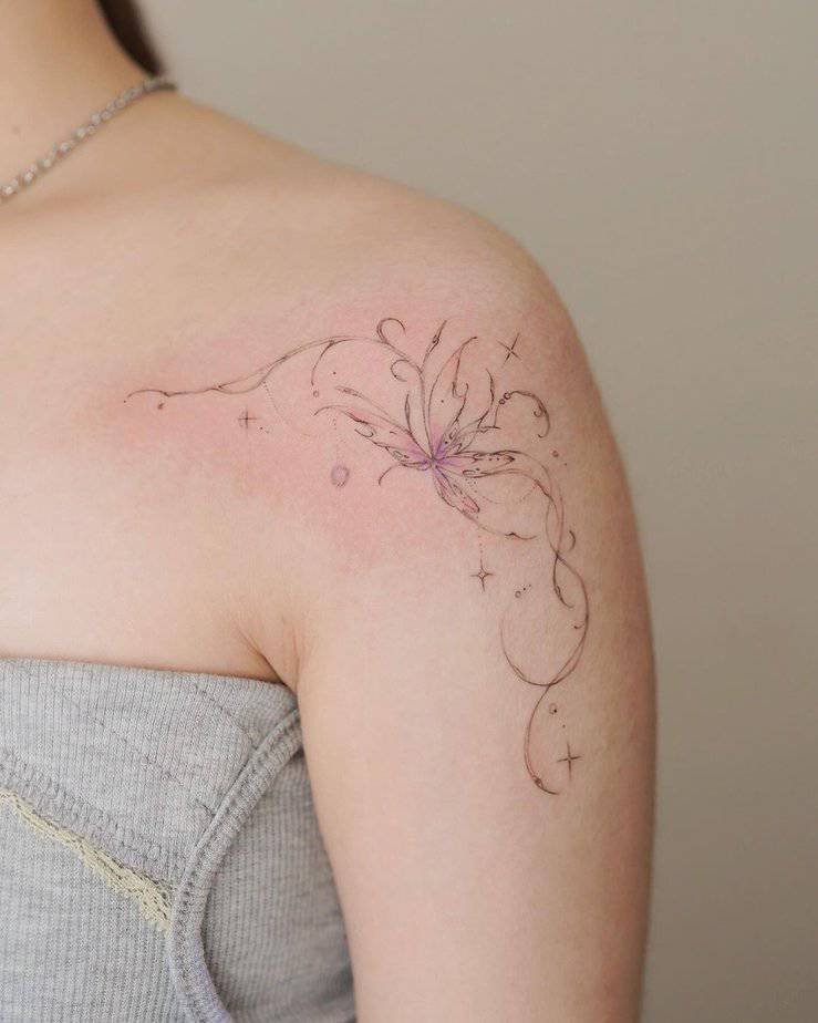 A delicate shoulder butterfly that reads feminine and soft