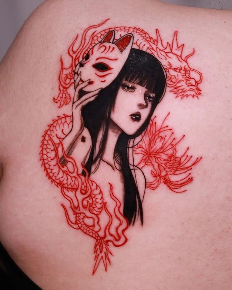 Big back pieces give off serious presence. A red dragon sprawled across your back reads like protection on a grand scale — intimidating and regal. If you want to look powerful and mysterious, this one’s perfect.