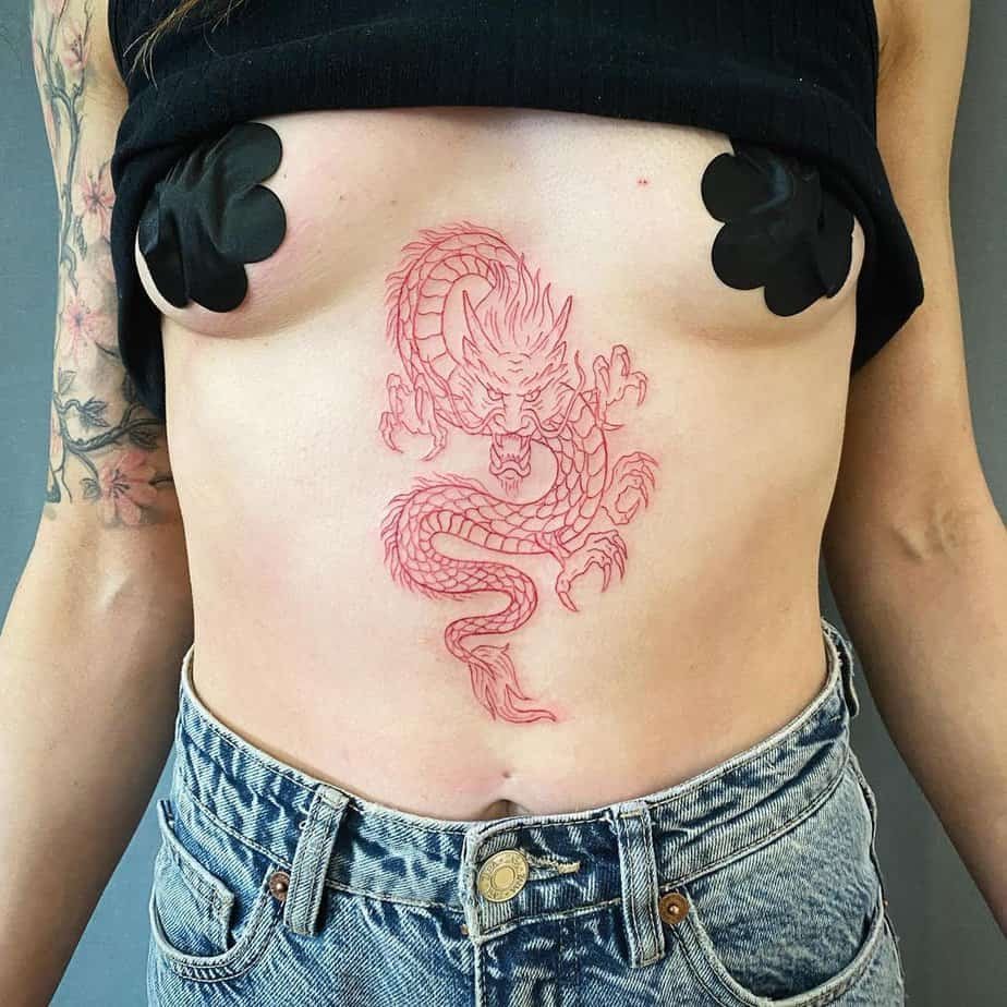 A dragon on the stomach has this intense, raw energy. It’s striking and very noticeable — a great choice if you want your tattoo to be a real statement.