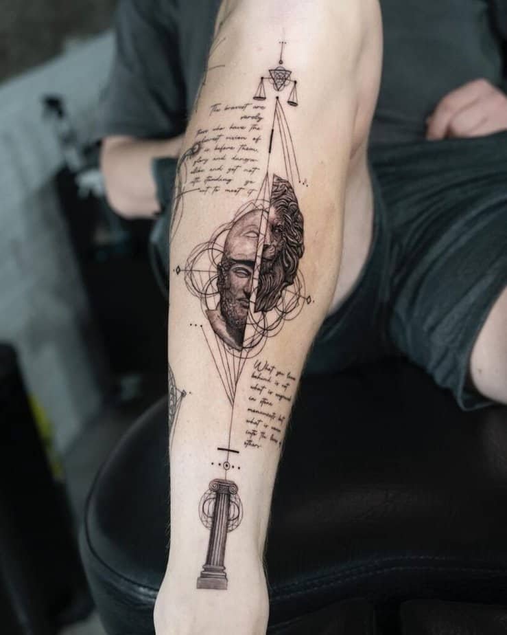 Greek mythology motifs are perfect if you want something narrative. Gods, goddesses, symbols — all of it layers meaning and gives your piece a classic, almost cinematic quality. Save this one for when you want a tattoo that feels like a myth you wear.