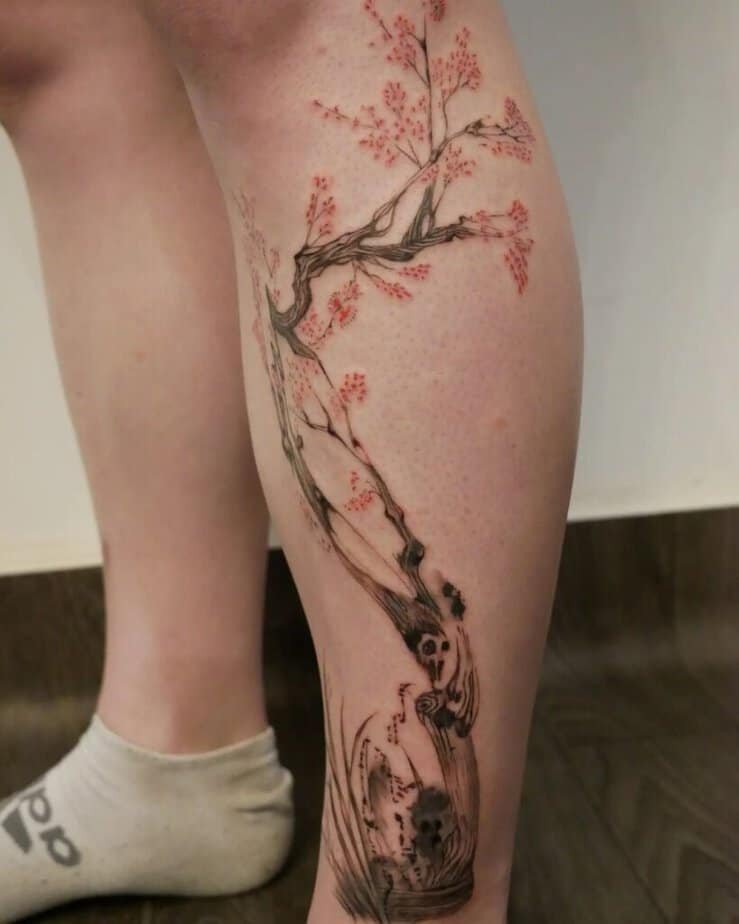 Cherry blossoms are elegant and meaningful — they capture ephemerality and beauty. Whether abstract or realistic, they make a gentle, poetic statement on the shin.