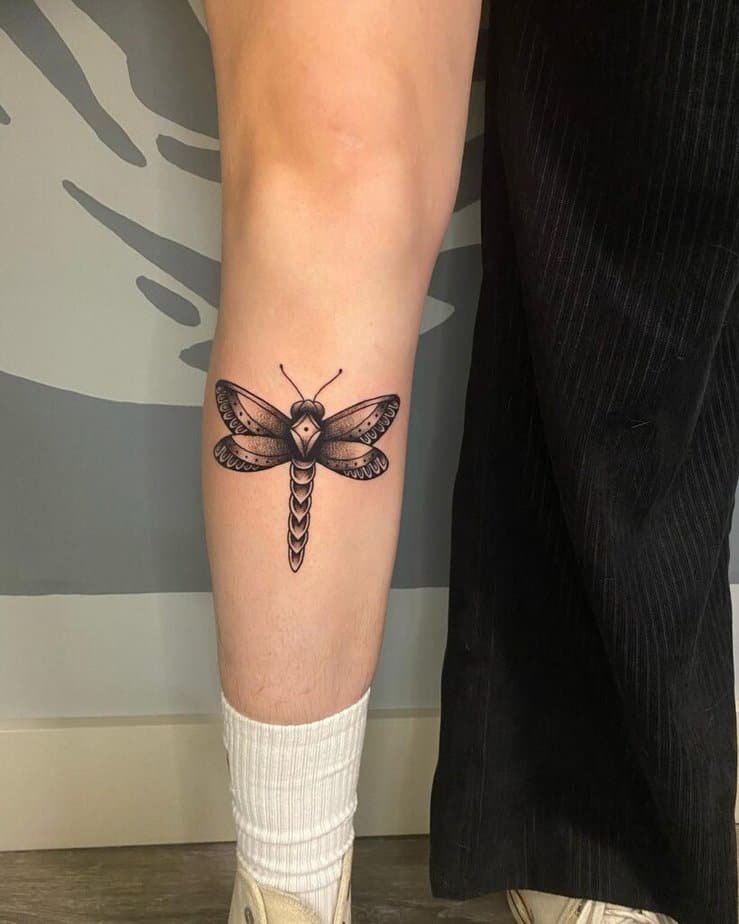 Dragonflies pack a lot of symbolism — freedom, change, harmony — and they look delicate and elegant on the shin. If you want something that feels hopeful and light, this is a beautiful option.