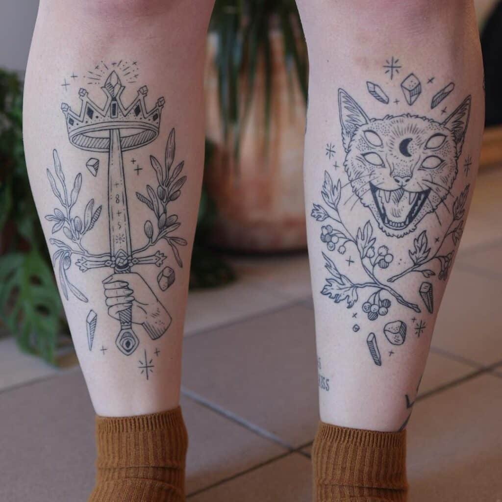One of the perks of the shin? Lots of canvas. That means tiny, delicate elements can coexist with bolder lines and still breathe. If you want a tattoo that reads as thoughtful and layered, the shin gives your artist room to play.
