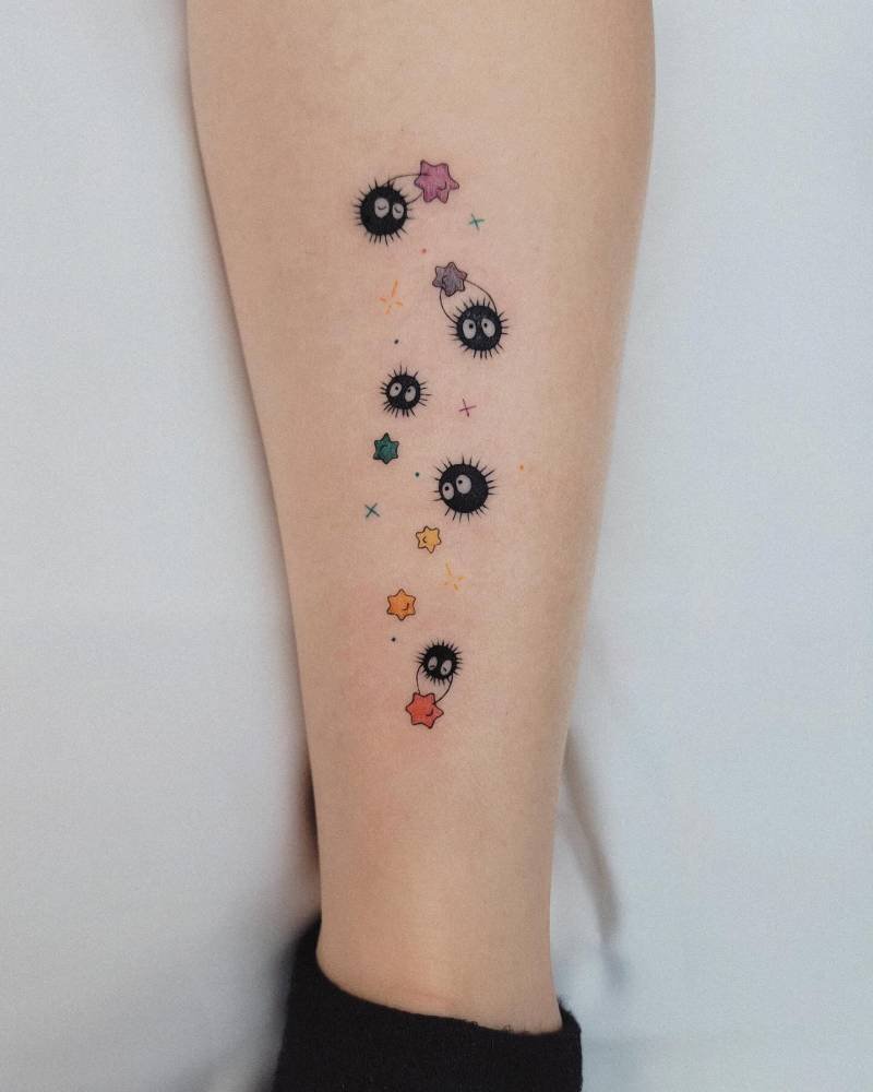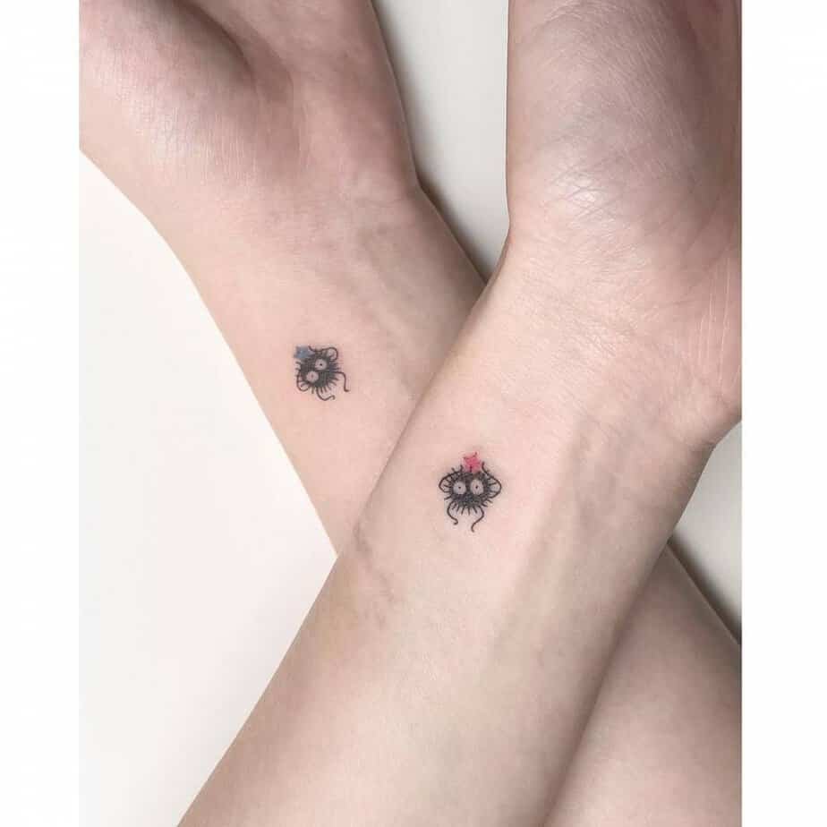 Because one soot sprite is sweet, but two is a vibe. Matching tattoos with colored stars are the perfect tiny way to share a love of Ghibli with someone you adore — whether that’s a sibling, a best friend, or your partner in crime.