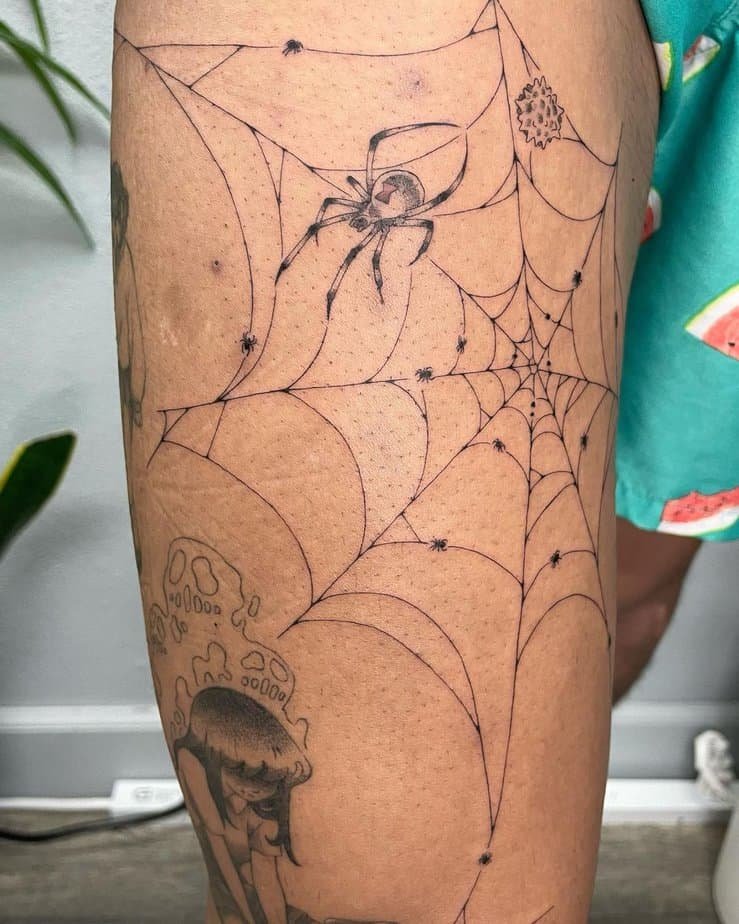 Not into literal tattoos? An abstract web gives you the idea without the exact form. It’s slightly off-kilter and artsy, which is perfect if you want something a little unexpected.
