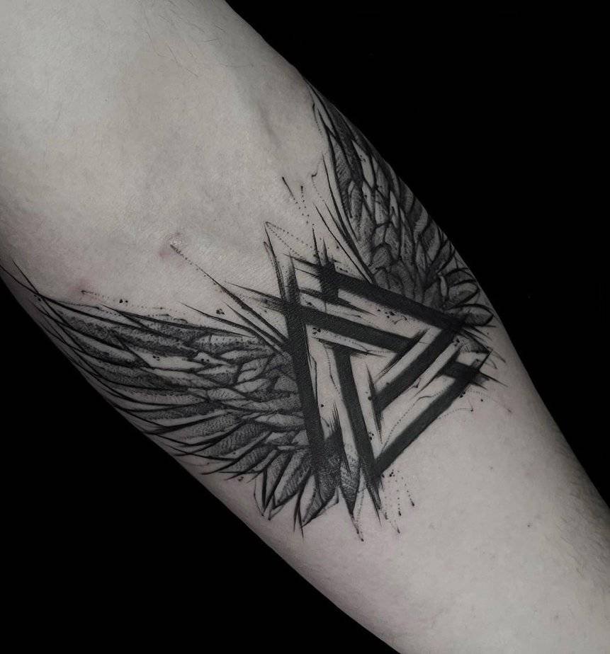 Add wings and the Valknut feels like it lives between worlds. The dark, detailed ink gives it a dramatic, almost divine quality — great if you want something that feels otherworldly.