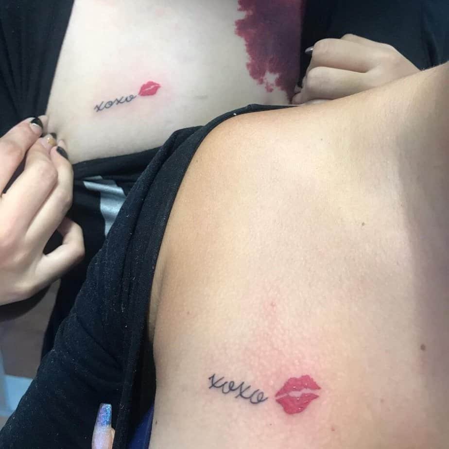 If you want a tiny, constant reminder of someone, matching XOXO tattoos are such a sweet idea. You can have the other person write it and use their handwriting as the stencil so it literally carries their touch. Some of these matching pieces are insanely crisp — clean ink, simple lines — and they feel like a small, wearable pact. Party besties might match with little lips and kisses, couples might choose the wrist so it’s visible when you reach for one another, and if you want to stand out, go for red ink instead of black. Red makes the simplest designs pop and feels playful and flirtatious, especially on dainty linework.